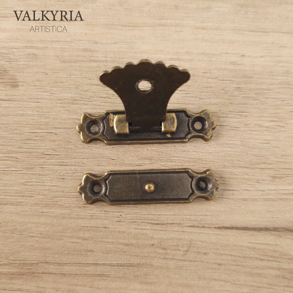 Kit Cierre para Cajas. Color: Bronce Viejo. Medidas: 3,7 x 2,5 cm (juntos).