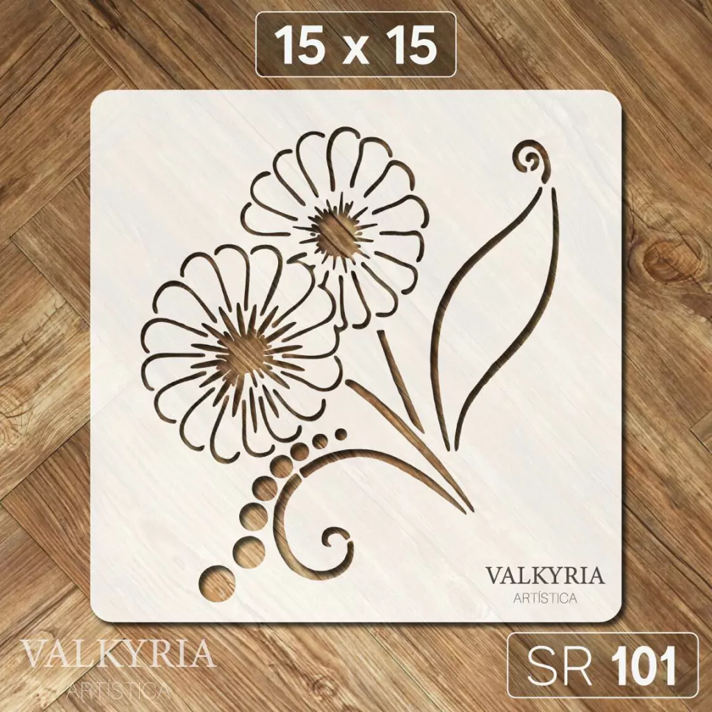 Stencil flexible de material simil acetato ideal para aplicar sobre cualquier superficie. Se puede utilizar con múltiples masas, pinturas y tintas (incluso indelebles). Se limpian con agua o solvente, dependiendo de la pintura utilizada.