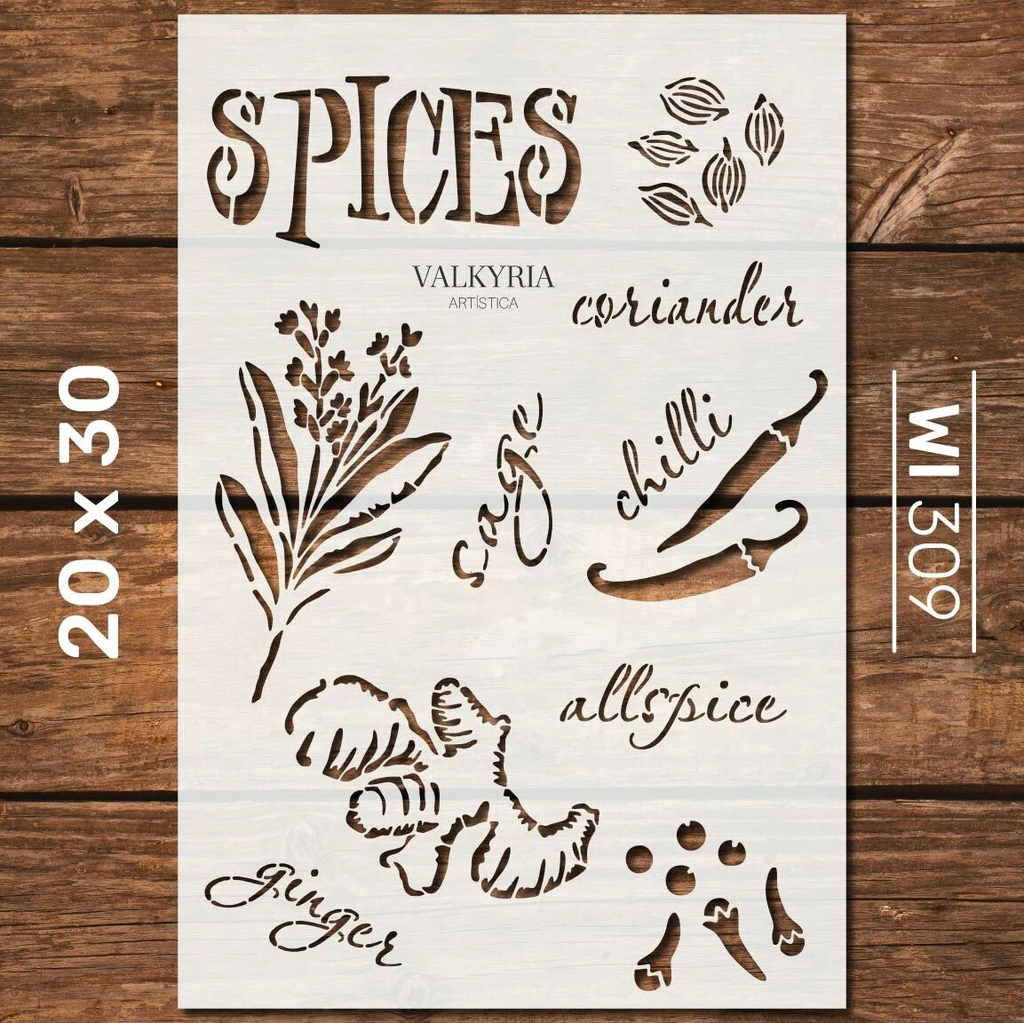Stencil 20 x 30 "Especias Jengibre Pimienta Sabia Cilantro" | I309