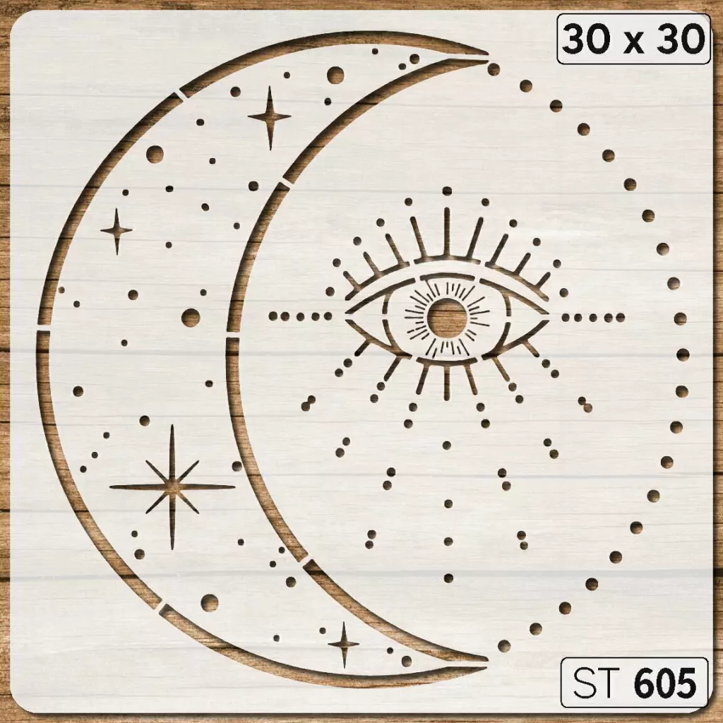 Stencil 30 x 30 "Ojo con Luna y Estrellas" | ST 605
