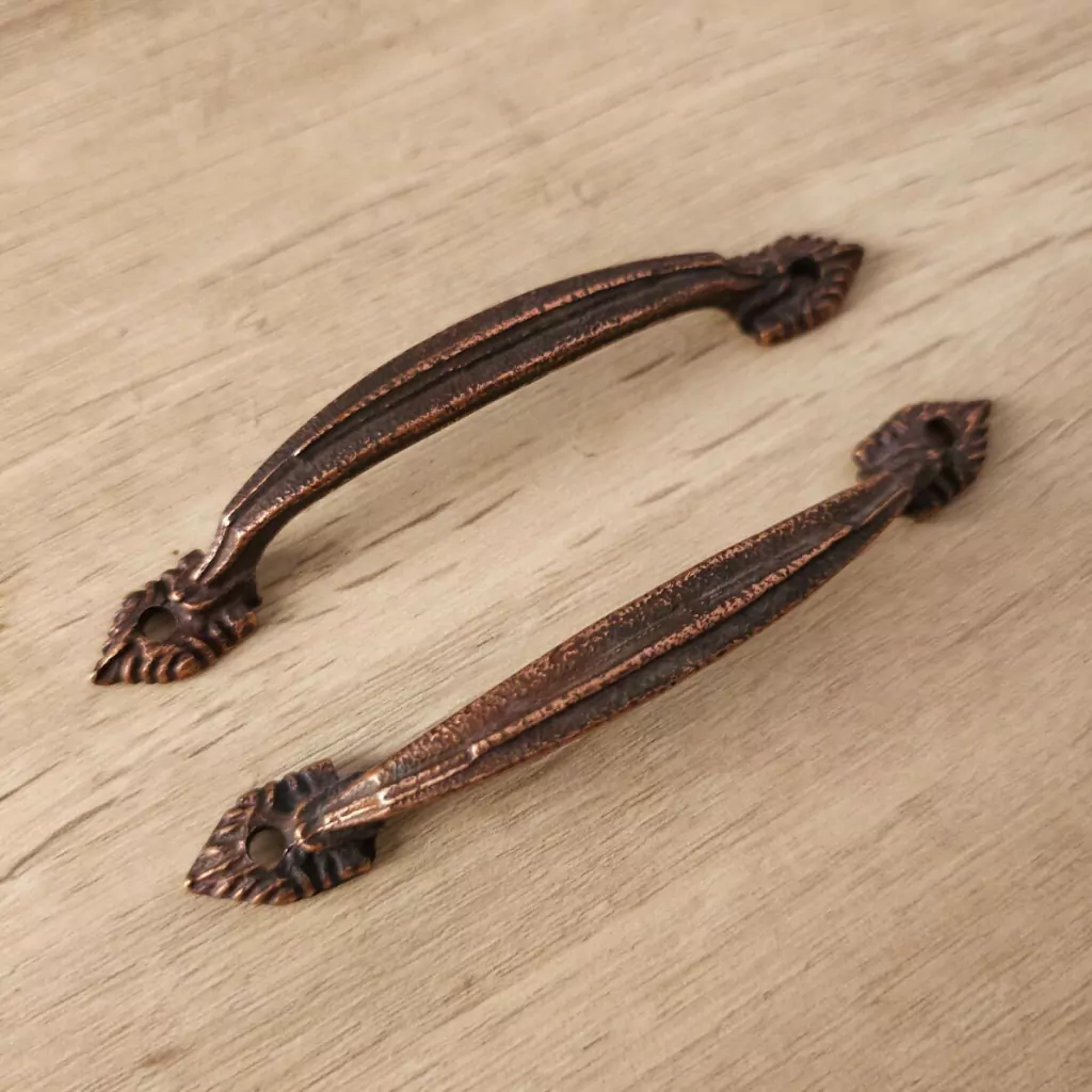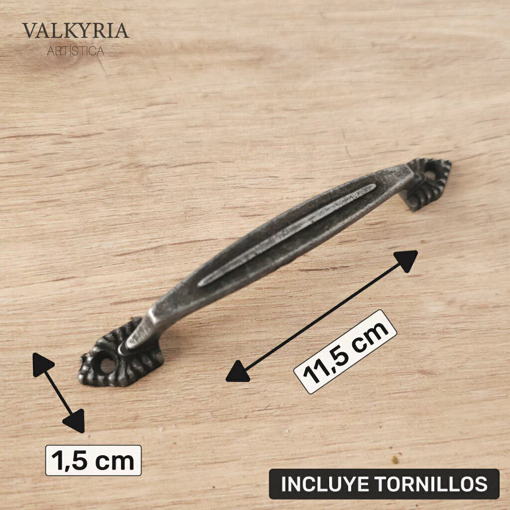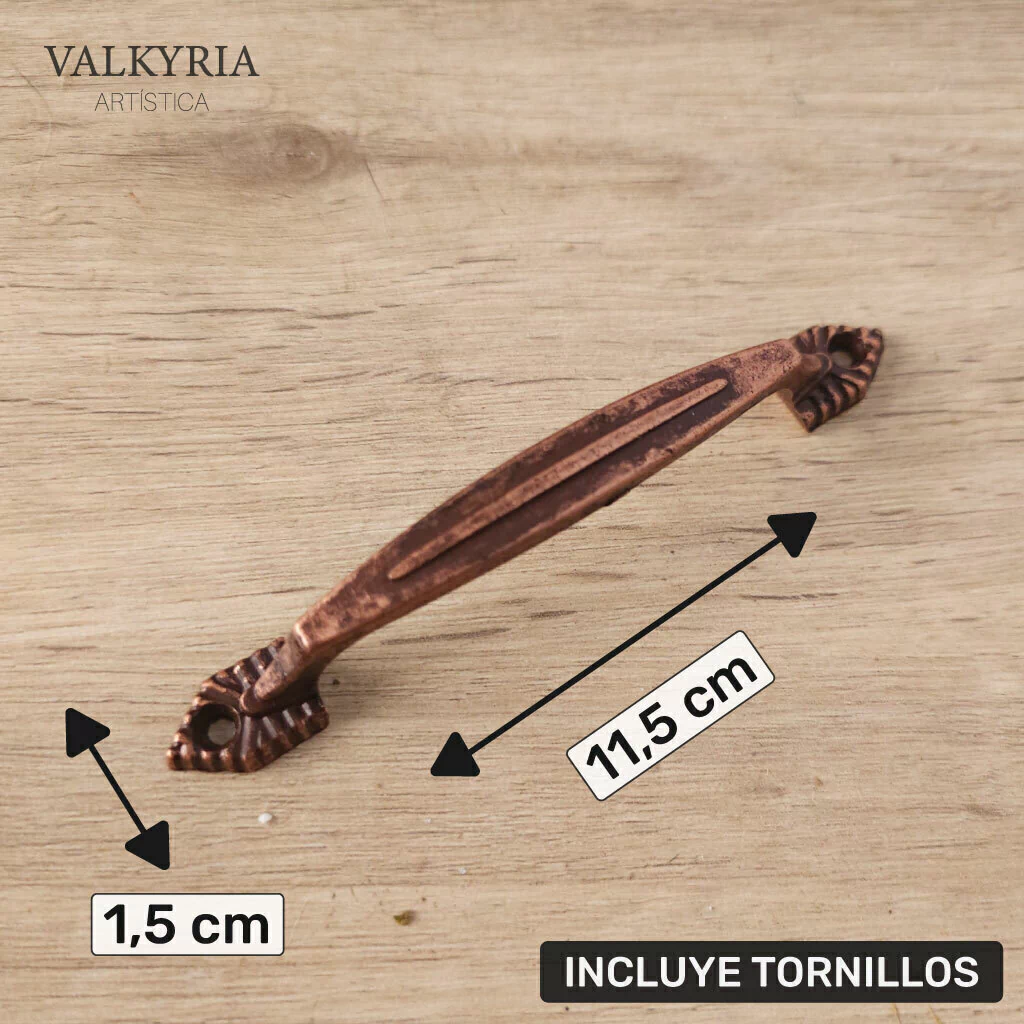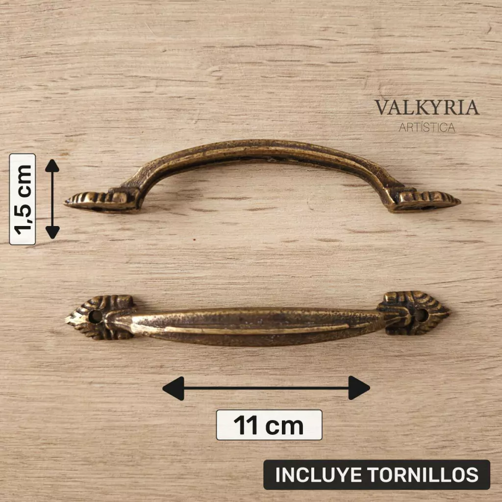Manija Puente Pia por 1 Unidad. Color: Bronce, Plata y Cobre Viejo. Medidas: 11,5 x 1,5 cm. Incluye Tornillos.
